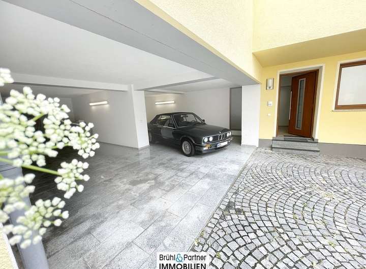 Eine geräumige Garage mit elektrischem Rolltor (Fernbedienung) bietet Stellfläche auch für große Fahrzeuge.
