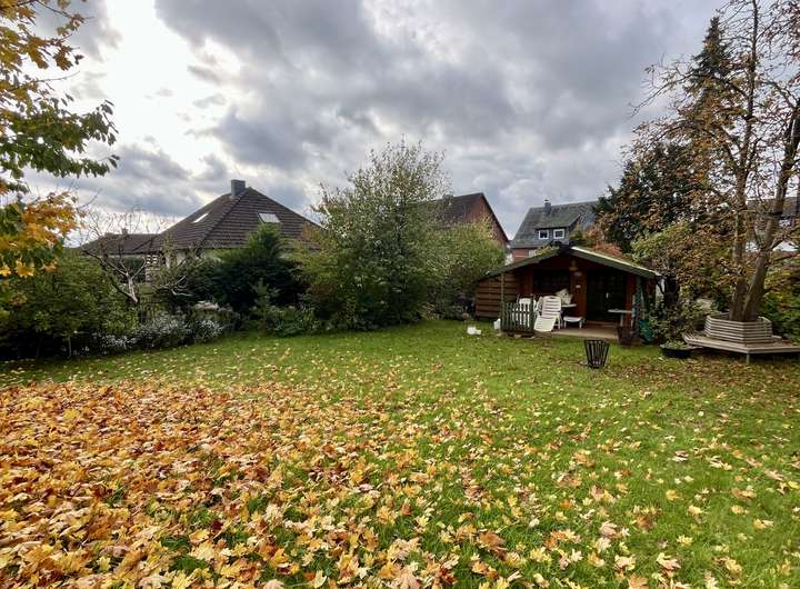 Der großzügige Garten mit einem Gartenhaus