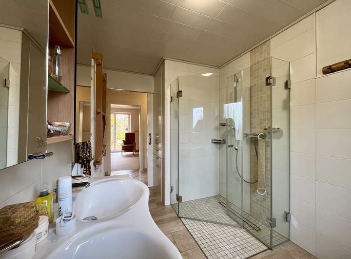 Das neuwertige Bad mit bodengleicher Dusche