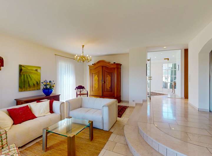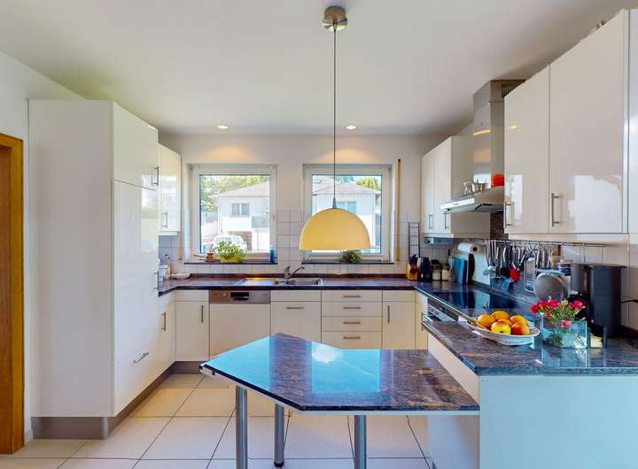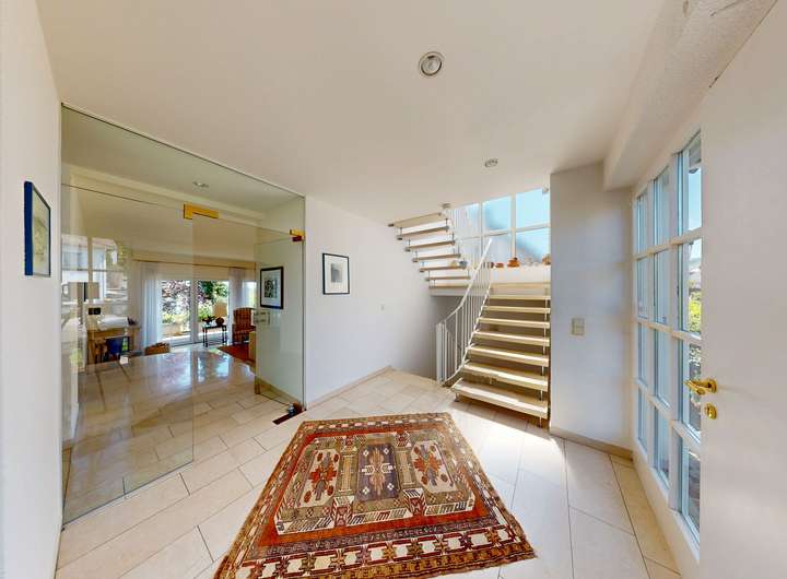 Entdecken Sie Ihr neues Traumhaus in einer der begehrtesten Wohnlagen Rüdesheims! Dieses großzügige Einfamilienhaus mit ca. 225 m² Wohnfläche auf einem ruhigen Grundstück von ca. 773 m² bietet weitläufige, lichtdurchflutete Räume, jede Menge Platz für Familien und alle, die Komfort, Privatsphäre und ein stilvolles Zuhause schätzen. Hier erleben Sie Wohnqualität auf höchstem Niveau – perfekt zum Wohlfühlen, Entspannen und Leben. In insgesamt acht Zimmern erwarten Sie offene Wohnbereiche und große Fensterfronten, die viel Tageslicht hereinlassen. Ein stilvoller Kamin im Wohnzimmer sorgt für zusätzliche Gemütlichkeit und schafft ein einladendes Wohnambiente. Die Ausstattung überzeugt auf ganzer Linie: Im Erdgeschoss finden Sie elegante Marmor- und Fliesenböden, im Obergeschoss Teppichbelag. Die moderne Einbauküche sowie weitere Küchenanschlüsse im Obergeschoss bieten Flexibilität und Komfort. Das Haus wurde teilweise modernisiert: Die Gasheizung stammt aus 2021 und die Fenster wurden nach und nach modernisiert, sodass eine solide energetische Basis gewährleistet ist (Energieklasse D). Fußbodenheizung im gesamten Haus sorgt für behagliche Wärme. Der Außenbereich lädt mit einem gepflegten Garten, einer großen Terrasse und einem Balkon zum Entspannen ein. Eine Tiefgarage mit zwei Stellplätzen sowie ein vollunterkellerter Bereich mit vielseitigen Nutzungsmöglichkeiten – Fitnessraum, Hobbyraum, Sauna oder Lagerfläche – runden das Angebot ab. Die zentrale, dennoch ruhige Lage garantiert kurze Wege zu Einkaufsmöglichkeiten, Schulen und öffentlichen Verkehrsmitteln. Rüdesheim überzeugt zudem als charmante Wein- und Tourismusstadt mit hoher Lebensqualität in malerischer Umgebung. Verbrauchsausweis: Endenergieverbrauch kWh/(m²*a): 112,2; CO2-Emissionsergebnis kWh/(m²*a): 26,9; Gas, Baujahr: 1980, Baujahr Heizung: 2021, Energieklasse: D