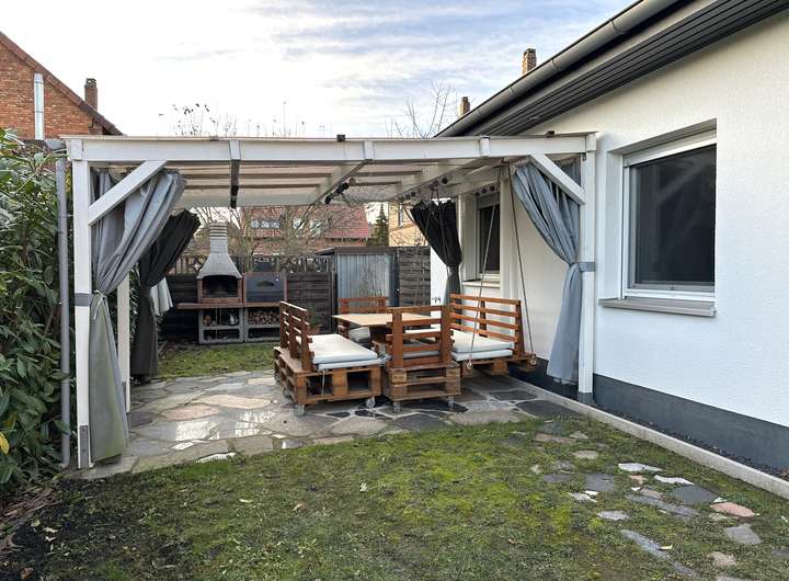 Der schöne Bungalow wurde 2016 erbaut. Das Leben auf einer Ebene mit eigenem Garten ist nicht nur bei Senioren beliebt, sondern kommt auch bei Haushalten anderer Altersgruppen gut an. Die Raumaufteilung ist geschickt ausgeführt, sodass man das Haus auch als Familie bewohnen kann.