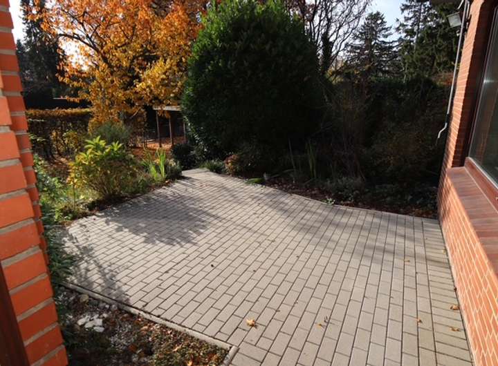 Die Terrasse ist nach Süden ausgerichtet und durch Hecken sowie weitere Anpflanzungen nicht einsehbar.