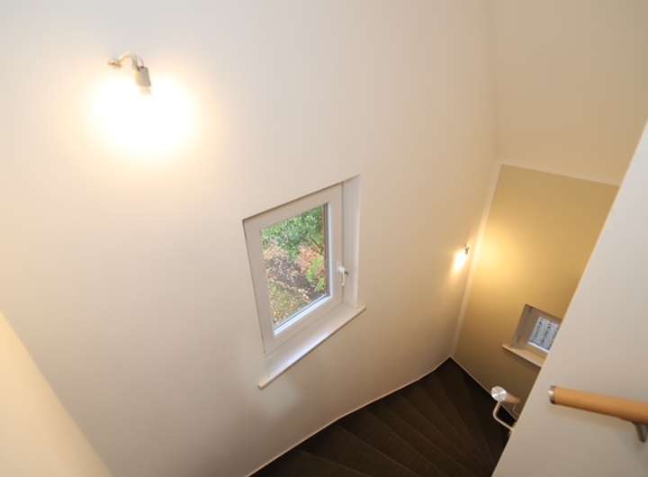 Im Erdgeschoss befinden sich das geräumige und durch große Fensterflächen lichtdurchflutete Wohnzimmer, ein Eßzimmer, die Küche, der Flur sowie ein Gäste-WC.