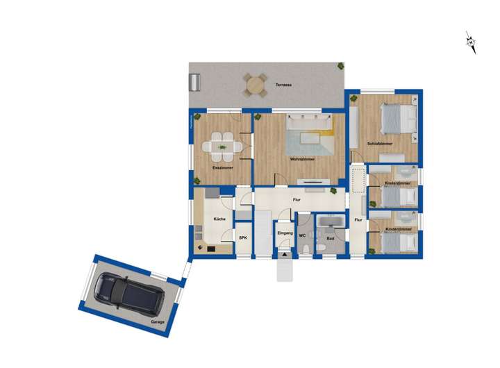 Das ebenerdige Wohnen macht das Haus sowohl für junge Familien attraktiv, die Wert auf Platz und Garten legen, als auch für Menschen, die im Alter komfortabel auf einer Ebene leben möchten.
