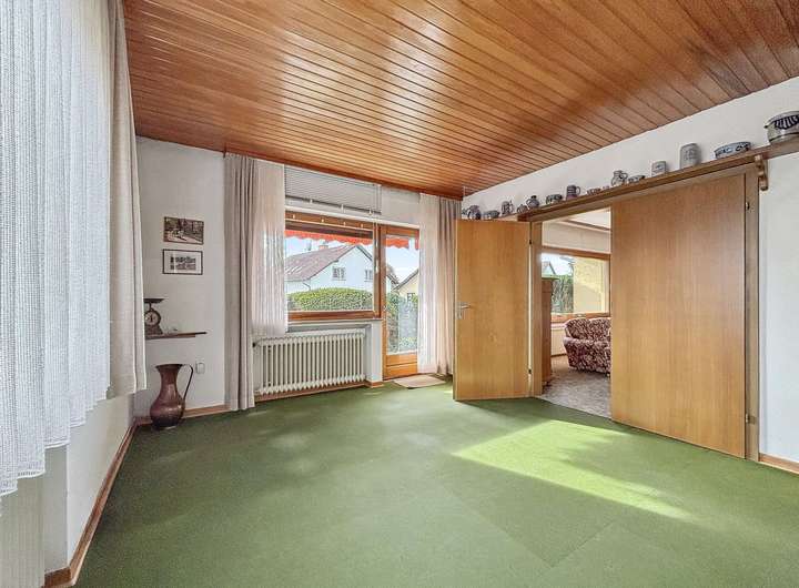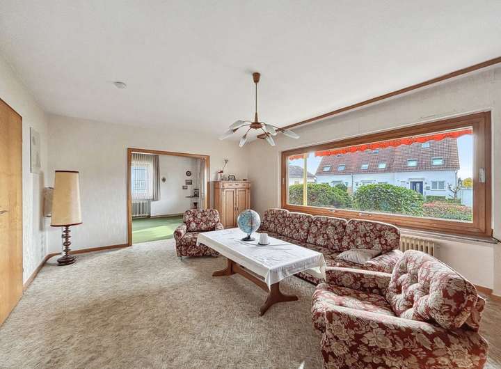Mit ca. 117 m² Wohnfläche bietet der Bungalow derzeit vier gut geschnittene Zimmer sowie ein separates Esszimmer, das sich mit überschaubarem Aufwand in ein weiteres Zimmer umwandeln ließe – ideal für Familien, die zusätzlichen Raum benötigen. Die Räume sind hell, freundlich und funktional angelegt – typisch für die Architektur dieser Zeit.