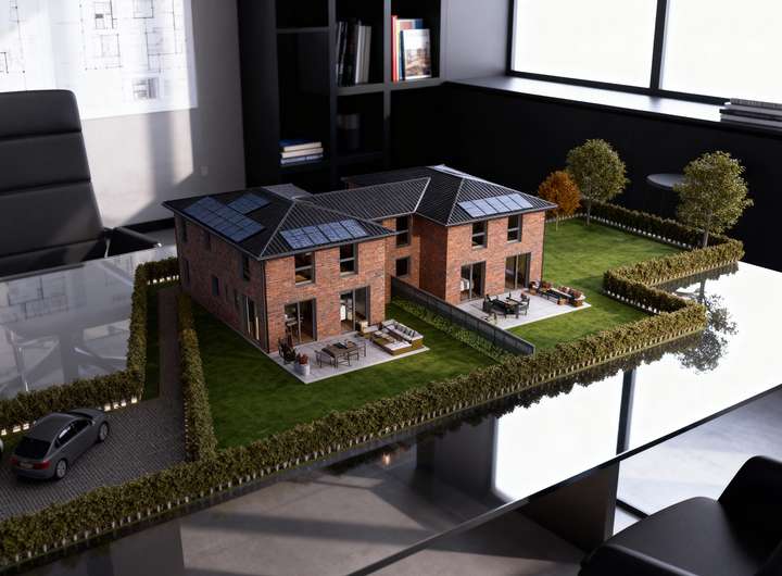 • Modernes Bauprojekt für zwei Doppelhaushälften mit Süd-Ausrichtung in Hamburg-Duvenstedt.
