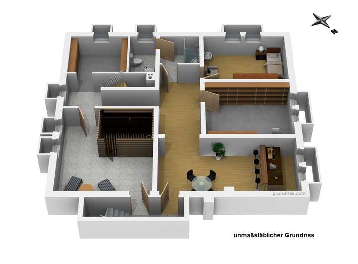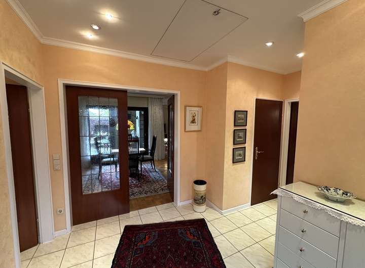 Der Vollkeller bietet zusätzlichen Raum für Freizeit und Erholung: Eine Sauna und ein gemütlicher Partyraum – beide mit direktem Gartenzugang – schaffen vielfältige Nutzungsmöglichkeiten. Darüber hinaus stehen im Keller ein Heizraum, Gästezimmer, eine Dusche, ein Werkraum sowie ein weiterer Vorratsraum zur Verfügung.
