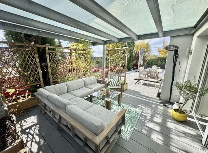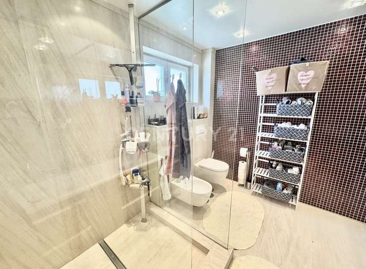 Ob Elektroleitungen, Wasserinstallationen, Wärmepumpe, Photovoltaikanlage, Dach oder Dämmung – alles stammt aus dem Jahr 2016. Hochwertige Materialien prägen jedes Detail: edle Fliesen, Granit und Parkettböden, vierfach verglaste Fenster mit elektrischen Rollläden, ein eleganter Marmor-Umluftkamin und traumhafte Terrassen – eine davon teils überdacht - sowie Zugang zum liebevoll angelegten Teich.