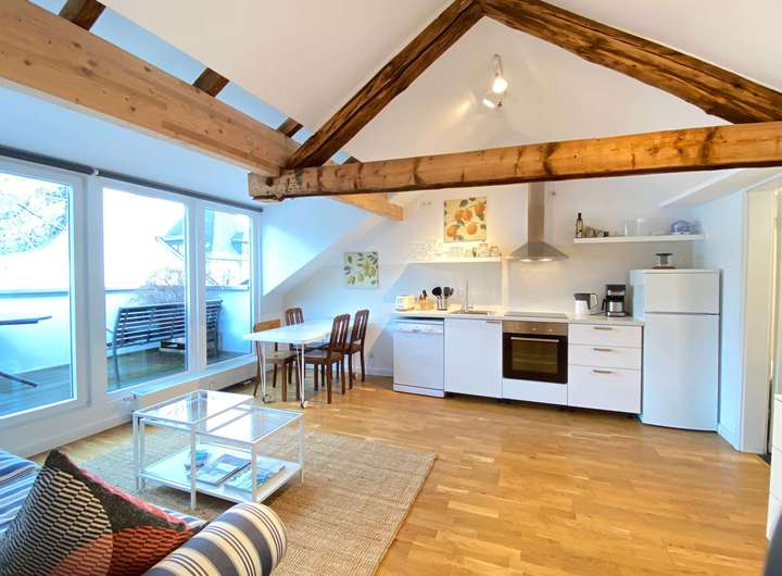 Die Wohneinheiten bieten 1,5 bis 2,5 Zimmer, moderne Einbauküchen und helle Bäder mit Tageslicht. Besonders hervorzuheben ist die Dachterrasse der Wohnung im 3. Obergeschoss, die als Ferienwohnung genutzt wird. Die Gewerbeeinheit umfasst eine 50 m² große Einheit mit WC sowie eine Lagerfläche von 10 m², teilweise frei verfügbar.