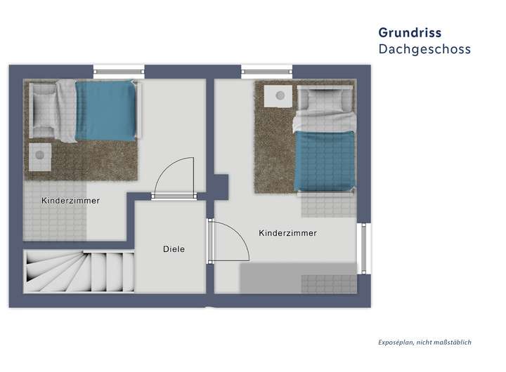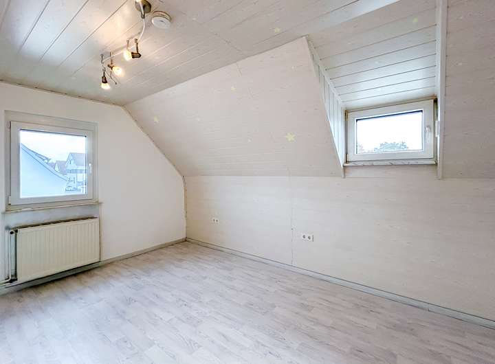 Im Dachgeschoss erwartet die Familie eine charmante Diele, von der aus zwei helle Kinderzimmer erreichbar sind – perfekte Rückzugsorte für die Kleinen, zum Spielen, Lernen oder Träumen. Über eine Zugtreppe erreichen Sie den Dachboden, der zusätzlichen Stauraum für Spielsachen, Erinnerungen oder saisonale Gegenstände bietet.