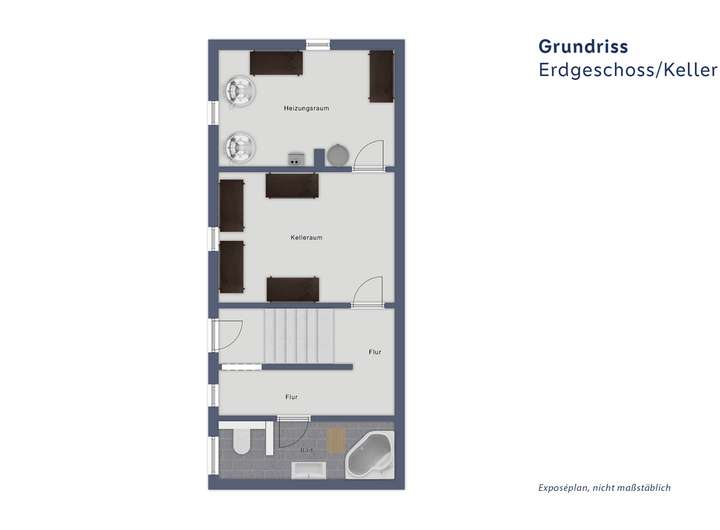 Das Untergeschoss umfasst einen großzügigen Kellerraum sowie den Heizungskeller mit der Gaszentralheizung aus 1987. Von außen zugänglich sind die Garage, eine Werkstadt und ein praktischer Abstellraum, ideal für Fahrräder, Gartengeräte oder Hobbyutensilien.