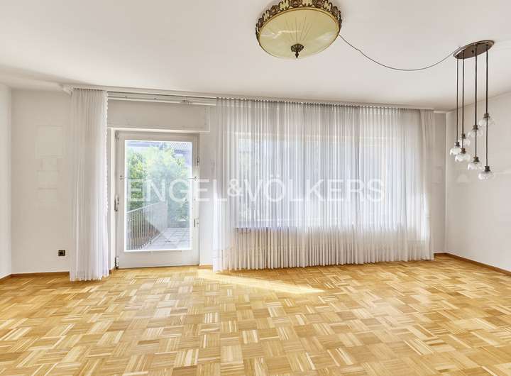 Bereits beim Betreten des Hauses empfängt Sie im Erdgeschoss ein freundlicher Eingangsbereich, von dem aus Sie in das praktische Gäste-WC gelangen. Herzstück des Hauses ist das lichtdurchflutete Wohnzimmer, das mit einem stilvollen Parkettboden ausgestattet ist und durch die großen Fenster einen schönen Blick in den Garten ermöglicht. Die Küche ist praktisch geschnitten und bietet alle Voraussetzungen für die Zubereitung gemeinsamer Mahlzeiten. Direkt gegenüber liegt das separate Esszimmer, das eine gemütliche Umgebung für das gesellige Beisammensein schafft.
