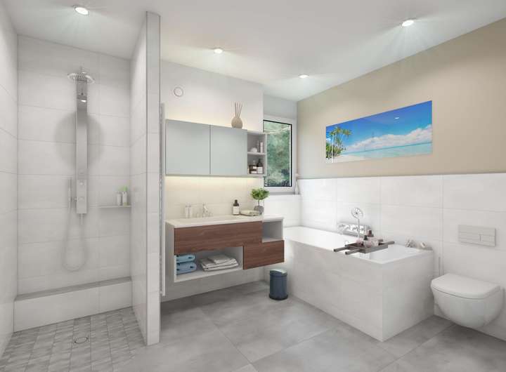 Zur Besichtigung steht ein Musterhaus zur Verfügung. Die Gestaltung der eigenen Immobilie kann in der Bauphase noch selbst mit entschieden werden.