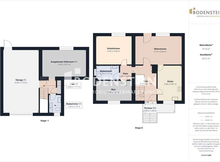 - Insgesamt ca. 75 m² Wohnfläche (zusätzlich ca. 25 m² bewohnbarer Raum im KG und ca. 37 m² Nutzfläche)