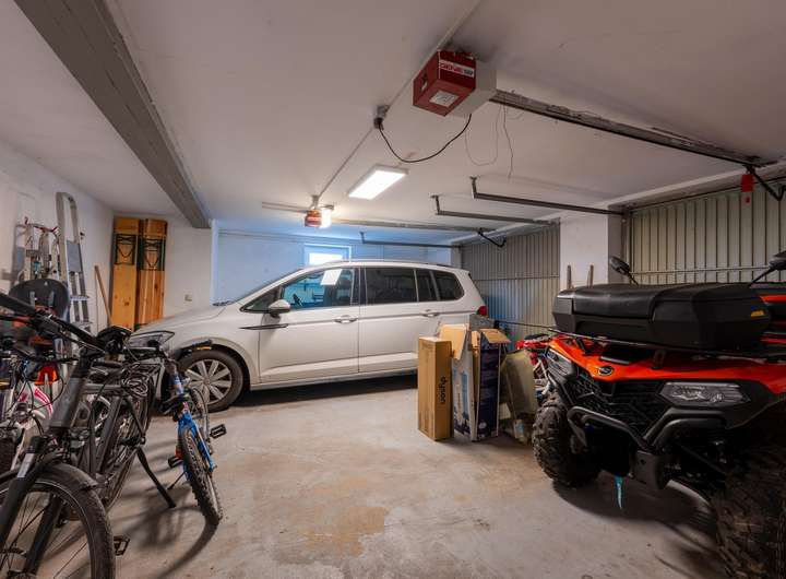 Für Fahrzeuge stehen eine eigene Auffahrt, mehrere Stellplätze sowie eine doppelte Tiefgarage zur Verfügung.