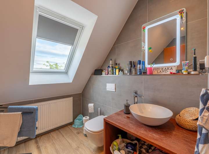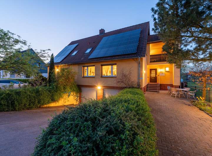 Die PV-Anlage (9,12 kWp, Inbetriebnahme 2022) inklusive 10 kW Speicher sowie die moderne BOSCH Wärmepumpe (2023) reduzieren die Energiekosten erheblich und machen das Haus technisch zeitgemäß ausgestattet.