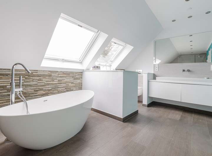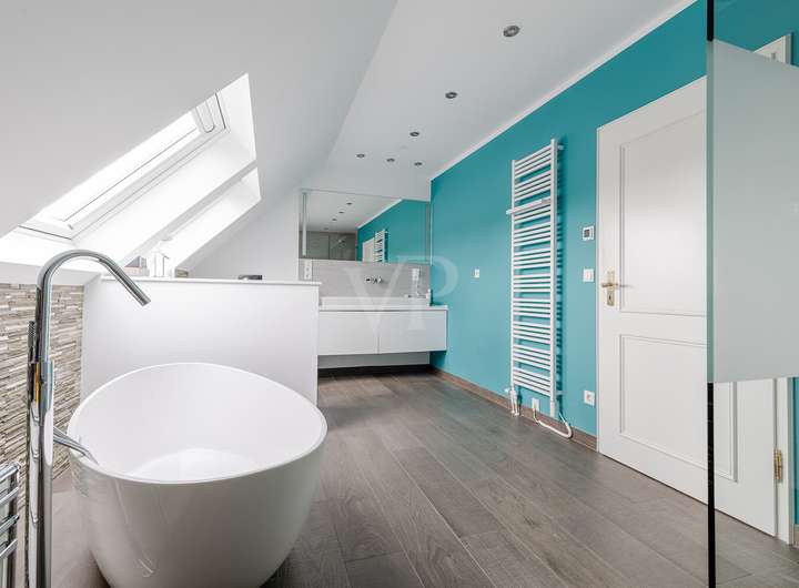 - Vier moderne Tageslichtbäder, teils en suite, mit exklusiver Ausstattung aus 2015