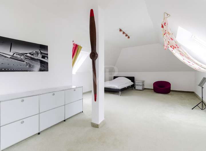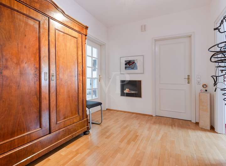 Das umfassende Sicherheitskonzept entspricht höchsten Ansprüchen: Alarmanlage und einbruchhemmende, schusssichere Holzsprossenfenster verbinden klassischen Charme mit modernster Technik. Vorbereitete Gardinenvorrichtungen, exklusive Ausstattungsqualität und überall durchdachte Details unterstreichen das stimmige Gesamtbild.