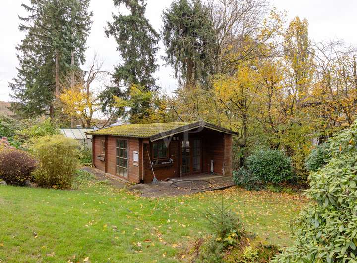 Der private Wellnessbereich mit Sauna, Dusche und WC rundet das Angebot ab. Hinzu kommt ein separat gelegenes Gartenhaus mit Saunaoption für entspannte Stunden im eigenen Garten. Die ca. 40 m² große Sonnenterrasse lädt zum Verweilen und geselligen Beisammensein ein und bietet einen herrlichen Blick in den parkähnlich angelegten Garten mit idealer Süd-Ausrichtung.
