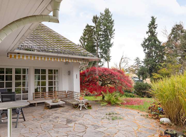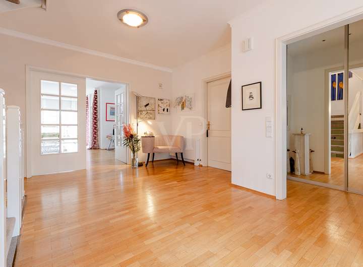 Das 1989 errichtete Objekt überzeugt durch eine zeitlos elegante Architektur und Innenausstattung. Hochwertige Materialien, exzellente Verarbeitung und sorgfältig aufeinander abgestimmte Details sind in sämtlichen Bereichen des Hauses spürbar. Bereits der faszinierende Eingangsbereich mit seiner stilvollen Treppenanlage vermittelt Großzügigkeit und besondere Wertigkeit.