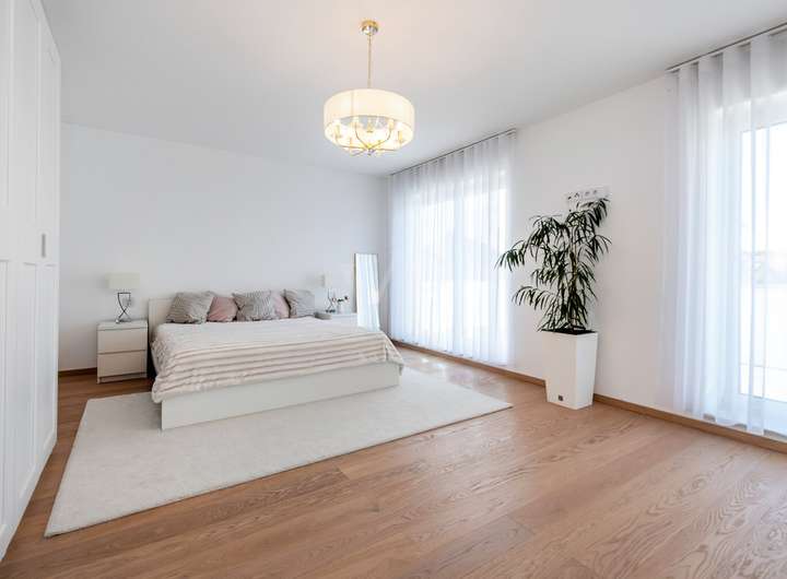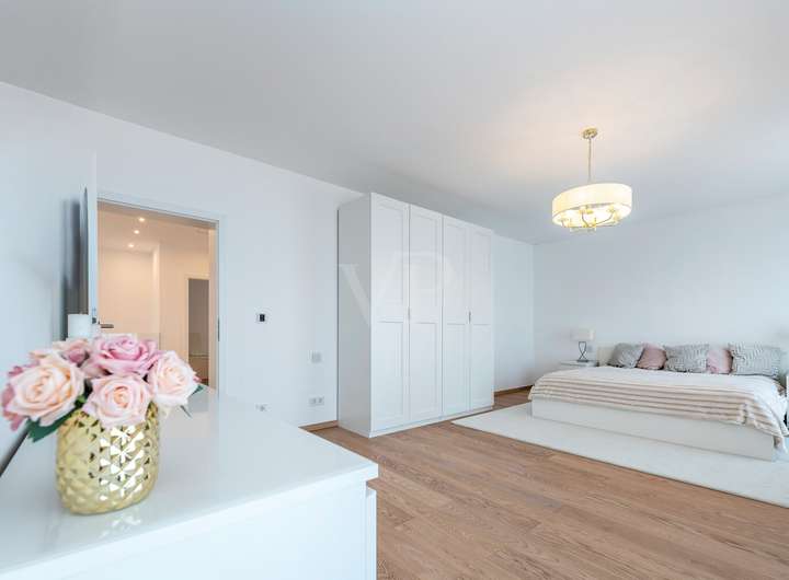 Der geräumige Elterntrakt mit Bad en Suite und Zugang zum Südbalkon überzeugt durch seine Großzügigkeit und elegante Leichtigkeit.