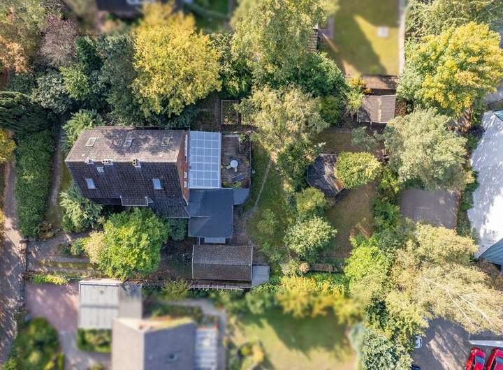 Durch die gewachsene Bepflanzung fügt sich das Anwesen nahtlos in die grüne Umgebung ein und vermittelt den Charme eines privaten Refugiums mitten im Grünen.