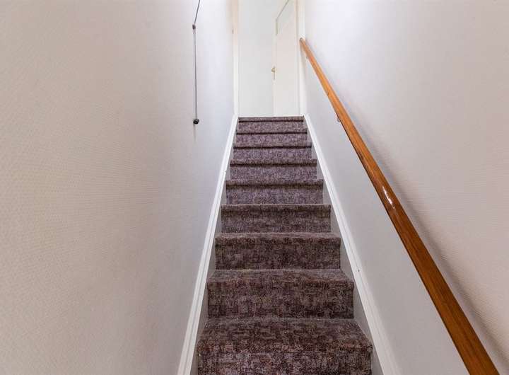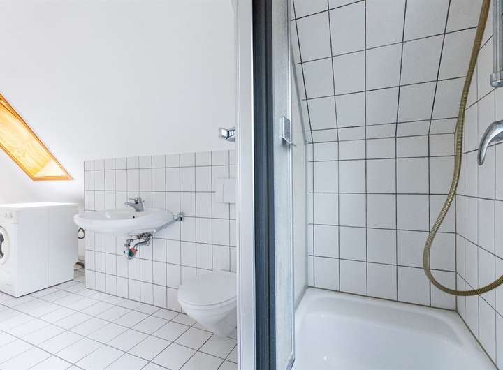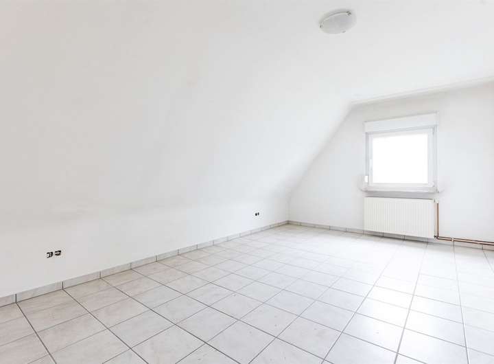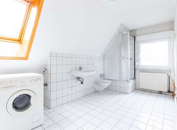 Im Erdgeschoss befinden sich ein helles Wohnzimmer, ein Schlafzimmer, ein Durchgangszimmer, eine Küche, ein Essbereich sowie ein Gäste-WC. Die beiden vorhandenen Treppenaufgänge führen jeweils separat in das Dachgeschoss – ein Überbleibsel der ursprünglichen Gebäudeaufteilung, das heute interessante Gestaltungsspielräume eröffnet.