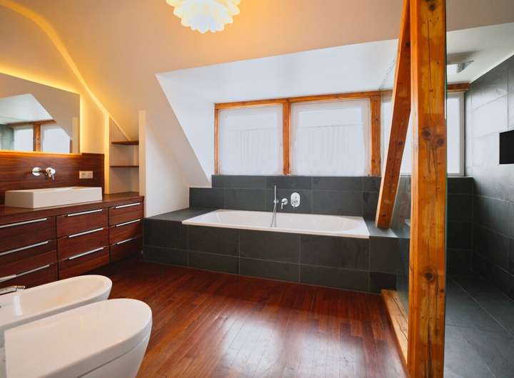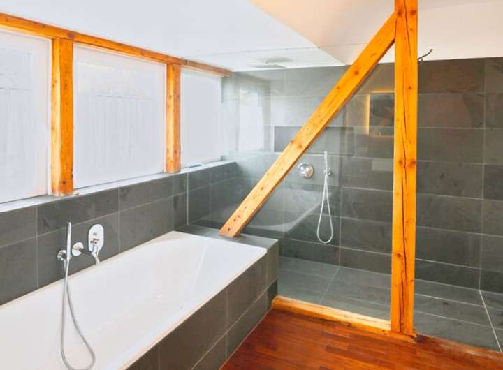 - Badezimmer im DG mit Badewanne und bodengleicher Dusche