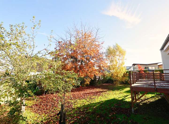 Der pflegeleichte Garten mit Freisitz bietet Ihnen einen idealen Ort, um entspannte Stunden an der frischen Luft zu verbringen. Ihre Privatsphäre ist gesichert durch zahlreiche Büsche und Bäume.