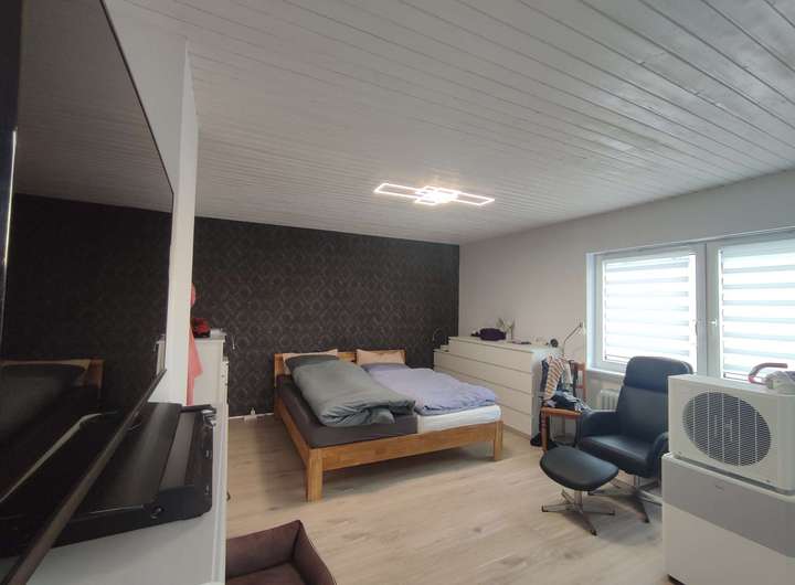 Das Haus bietet rund 96 m² Wohnfläche mit optimaler Raumaufteilung: heller Wohn- und Essbereich, separate Küche mit hochwertiger Einbauküche (aus 2023), drei Schlafzimmer, modernes Bad und Gäste-WC. Die Sanierung wurde 2023 abgeschlossen und umfasste nahezu alle Gewerke – einziehen und wohlfühlen statt sanieren.