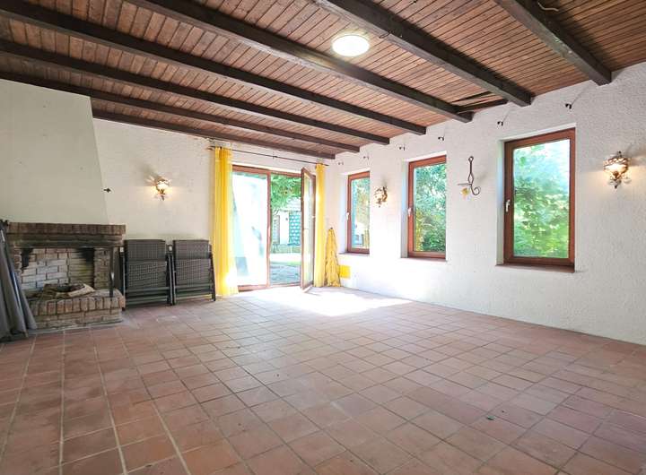 Auf dem Grundstück stehen noch eine Garage sowie ein in den 1970er Jahren errichteter Pavillon, der hohe Aufenthalts- und Nutzungsmöglichkeiten bieten kann.