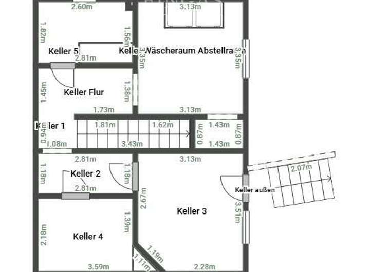 Keller mit mehreren Abstellräumen
