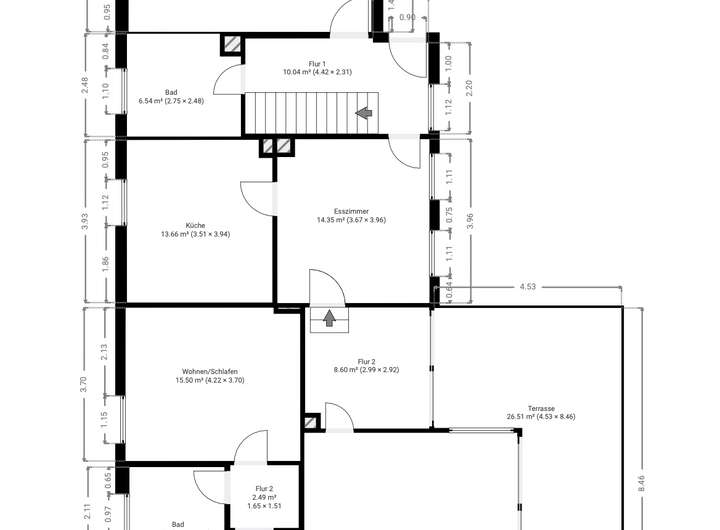 Im Obergeschoss des Vorderhauses befindet sich der privatere Wohnbereich mit 3 Schlafzimmern und einem weiteren Durchgangszimmer, welches sich wunderbar als Büro nutzen lässt. Zudem befindet sich hier eine großartige weitläufige Dachterrasse in Richtung Osten. Hier müsste zusätzlich in ein Geländer investiert werden, um die genehmigte Terrasse auch sicher benutzen zu können - in jedem Fall ein Highlight.