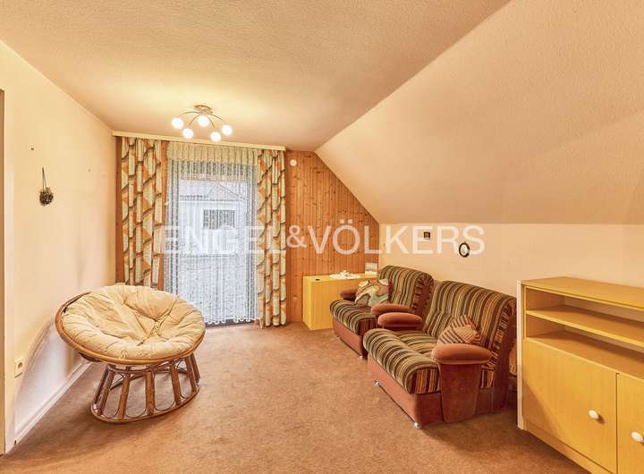 Das große Wohnzimmer verbindet das Einfamilienhaus mit dem eingeschossigen Anbau, welcher durch einen privaten separaten Eingang, vollwertig als eigenständige Wohneinheit genutzt werden kann. Mit einer Küche, einem Bad inklusive Bidet und einem Schlafzimmer bietet er sich hervorragend für das erwachsene Kind, die Eltern oder zu Vermietungszwecken an.