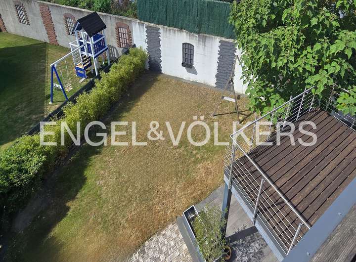 Im Obergeschoss erwarten Sie drei helle Schlafzimmer, alle mit bodentiefen Fenstern, ein Tageslichtbad mit Dusche und Wanne sowie ein Hauswirtschaftsraum, der als Wasch- und Bügelzimmer genutzt wird. Von zwei der drei Schlafzimmer gelangen Sie zudem auf einen großzügigen Balkon, der einen herrlichen Blick in den Garten bietet.