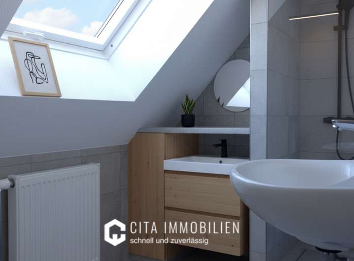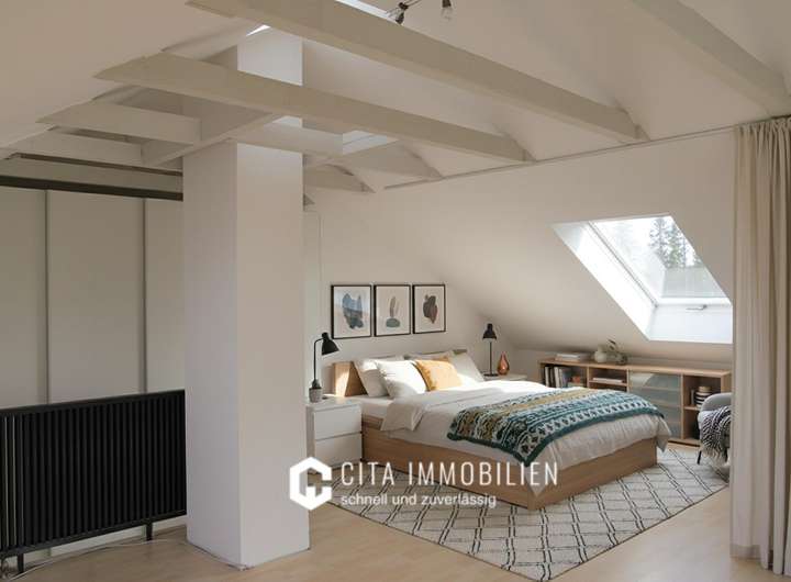 + OG und DG mit ca. 128 Quadratmetern: drei Zimmer, Küche, Bad, Studio im Dachgeschoss