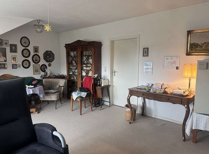 Die Einliegerwohnung besteht aus drei Zimmern, einer Küche und einem Wannenbad.