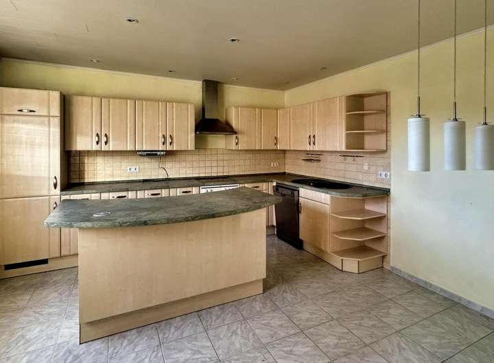 Einbauküche mit ausreichend Platz für eine gemütliche Essecke
