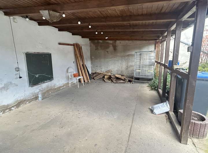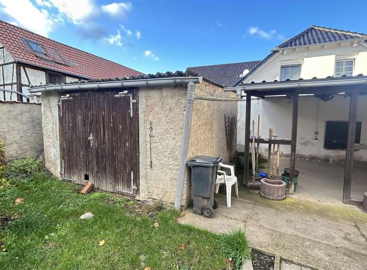 Garage sowie befestigter Unterstand auf dem Grundstück