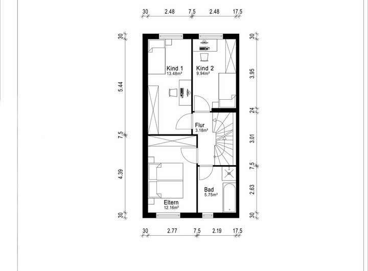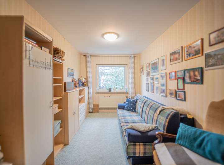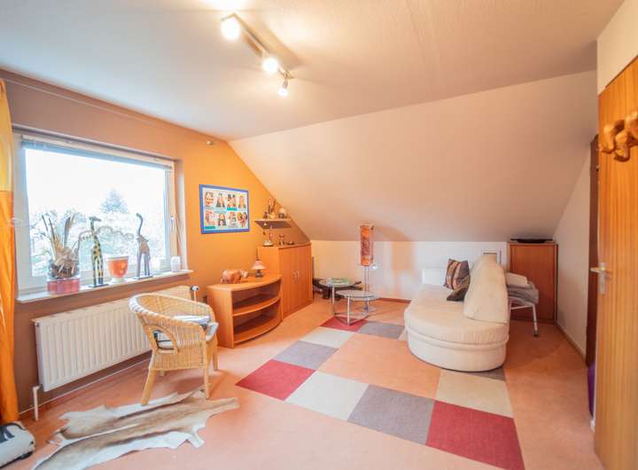 Das Dachgeschoss beherbergt ein vielseitig nutzbares Büro oder Hobbyzimmer sowie in einem separaten Abstellraum die moderne Heizungsanlage.