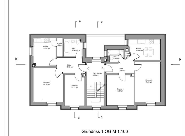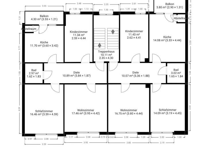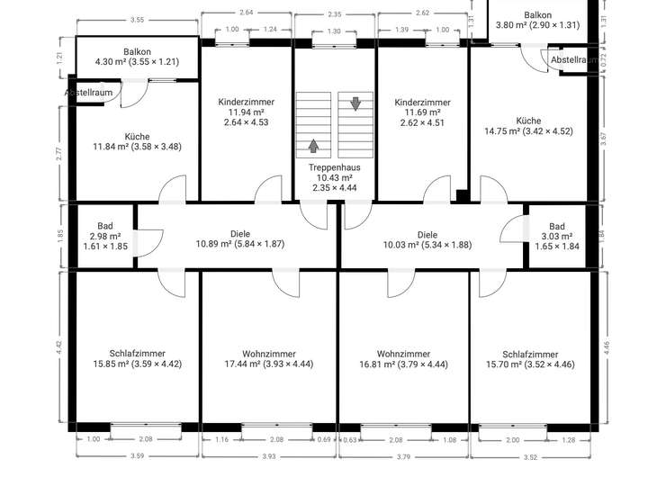 Das im Jahr 1953 errichtete Vorderhaus präsentiert sich mit insgesamt neun Wohneinheiten, verteilt auf vier Etagen sowie einem ausgebauten Dachgeschoss mit großzügiger, offener Raumgestaltung und einer Loggia zum Innenhof. Die Gesamtwohnfläche beträgt ca. 638 m². Die durchdacht geschnittenen Grundrisse bieten den Bewohnern funktionalen und zeitgemäßen Wohnkomfort. Sieben der neun Einheiten verfügen über Balkone mit Nordost-Ausrichtung – ideal für entspannte Abendstunden.