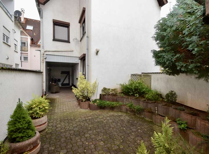 Der Außenbereich verfügt über einen Innenhof und die große Garage aus 1990.