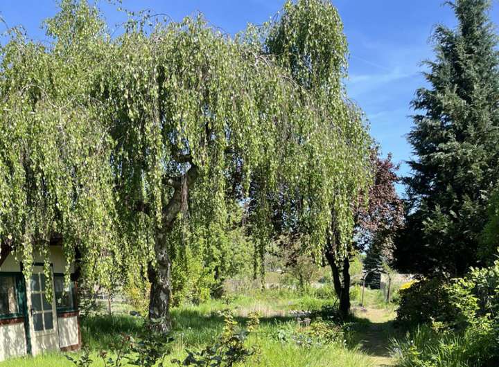 Hinter der Scheune befindet sich ein kleiner, abgeschlossener Hof mit weiteren Schuppen- und Stallgebäuden. Daran schließt sich ein wunderschöner Gartenbereich mit altem Baumbestand, Gartenhaus und Teich an – ein Ort der Ruhe und Entspannung, fernab vom Straßenlärm.