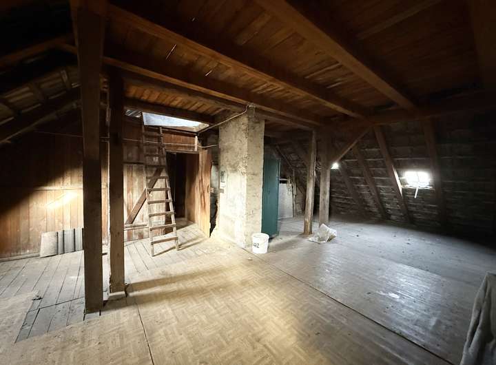 Zusätzlich stehen ca. 30 m² Nutzfläche/Wohnfläche im Treppenhaus inkl. einem Gäste-WC in Hofnähe zur Verfügung. Der Dachboden ist teilweise ausgebaut und bietet über das durchgehende Treppenhaus weiteres Ausbaupotenzial für zusätzlichen Wohnraum. Der vollunterkellerte Bereich sorgt für ausreichend Stauraum.