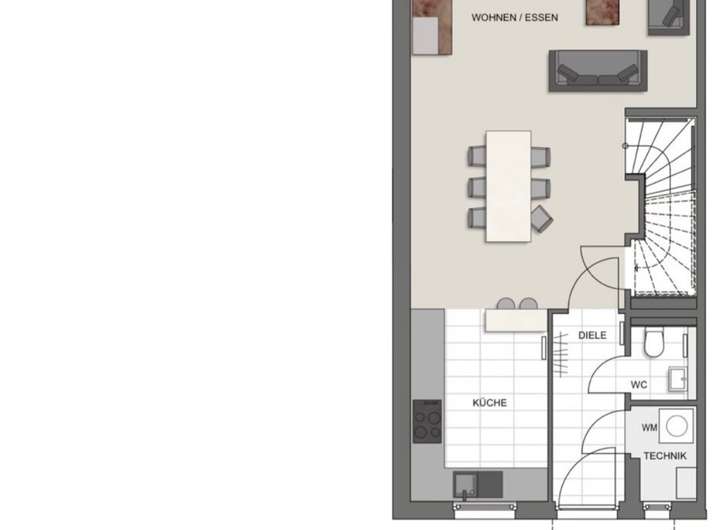 Im Erdgeschoss befindet sich der großzügige, lichtdurchflutete Wohn- und Essbereich, der durch seine offene Raumgestaltung ein angenehmes Wohngefühl schafft. Die moderne Einbauküche mit Kochinsel ist harmonisch in den Raum integriert und bietet beste Voraussetzungen für gemeinsames Kochen und gesellige Abende. Ebenfalls im Erdgeschoss befinden sich ein Gäste-WC sowie ein praktischer Abstellraum. Vom Wohn- und Essbereich gelangt man direkt auf die geflieste Süd-Terrasse und in den anschließenden Garten, der liebevoll angelegt und sehr gepflegt ist. Wasser- und Stromanschlüsse im Außenbereich sind vorhanden, was die Nutzung besonders komfortabel macht.