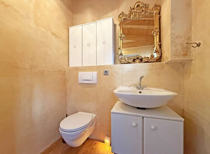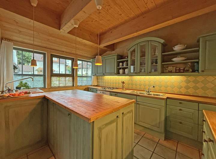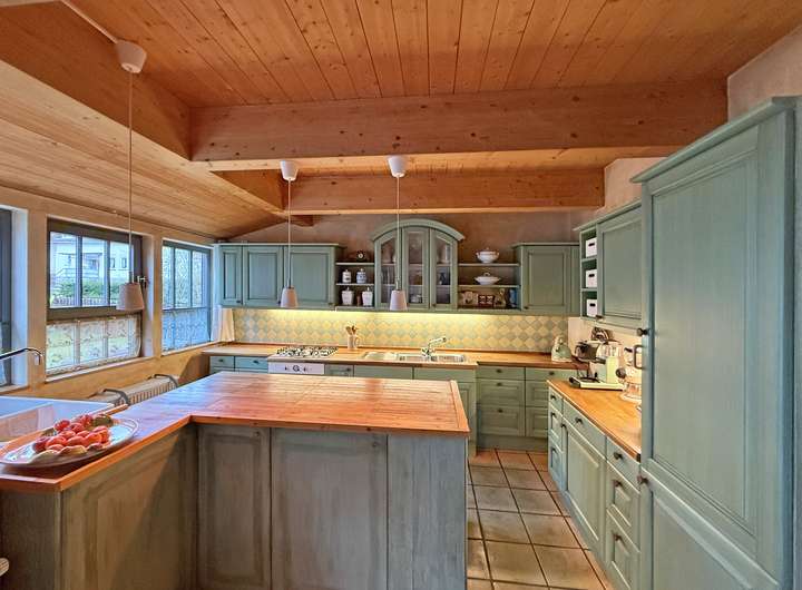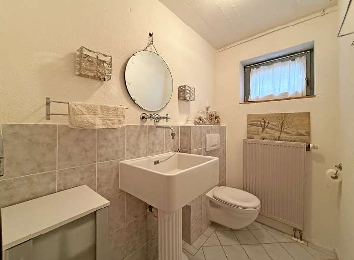 Der großzügige Wohn- und Essbereich mit seinem soliden Specksteinofen mit integriertem Backfach bildet das Herzstück des Hauses und sorgt für eine behagliche Atmosphäre – perfekt, um gemütliche Stunden mit der Familien und Freunden zu genießen. Für gesellige Kochevents ist die offene Küche ideal und mit allem Notwendigen bestens ausgestattet. Im Obergeschoss ist Parkett verlegt. Es beherbergt neben dem Schlafzimmer eine praktische Ankleide, ein WC und eine Galerie, die sich flexibel nutzen lässt. Große Fensterflächen lassen viel Licht herein. Im Untergeschoss befindet sich ein großzügiger Raum, der ungestörtes Arbeiten im Homeoffice erlaubt und durch einen separaten Zugang in den Außenbereich sogar Kundenbesuche möglich macht. Vervollständigt wird dieses Geschoss durch einen Abstellraum, die Waschküche, ein Gäste-WC und ein weiteres flexibel nutzbares Zimmer.