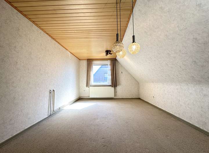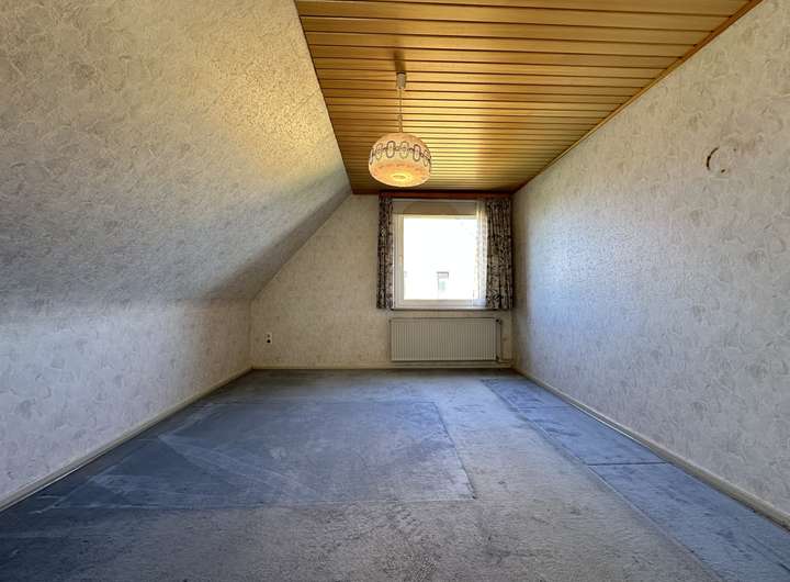 Weitere vier Räume und ein Wannenbad befinden sich im Obergeschoss. Einer der Räume verfügt über Küchenanschlüsse, aber kann z. B. auch als Kinderzimmer genutzt werden.