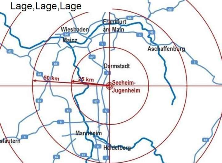 Darmstadt (ca.164.000 Einwohner, Stand: 2024) ist eine kreisfreie Stadt im Süden Hessens, Verwaltungssitz des Regierungsbezirks Darmstadt und des Landkreises Darmstadt-Dieburg. Die Stadt gehört zum Rhein-Main-Gebiet und bildet eines der zehn Oberzentren des Landes Hessen. Darmstadt ist nach Frankfurt am Main, Wiesbaden und Kassel die viertgrößte Stadt des Landes Hessen. Die nächstgelegenen größeren Städte sind Frankfurt am Main, etwa 30 km nördlich, Wiesbaden und Mainz, etwa 40 km nordwestlich, Mannheim, etwa 45 km sowie Heidelberg etwa 55 km südlich.