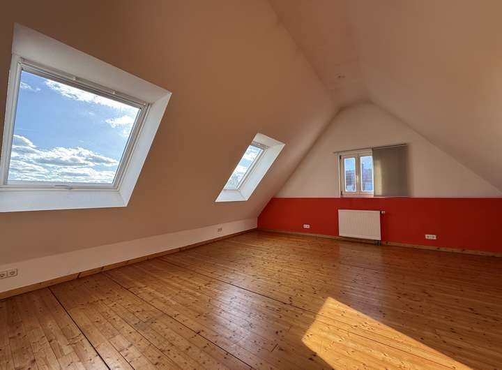 In der darüberliegenden Etage, im Dachgeschoss finden Sie ein Duschbad, ein Schlafzimmer sowie eine offene Küche mit Wohnbereich.