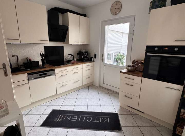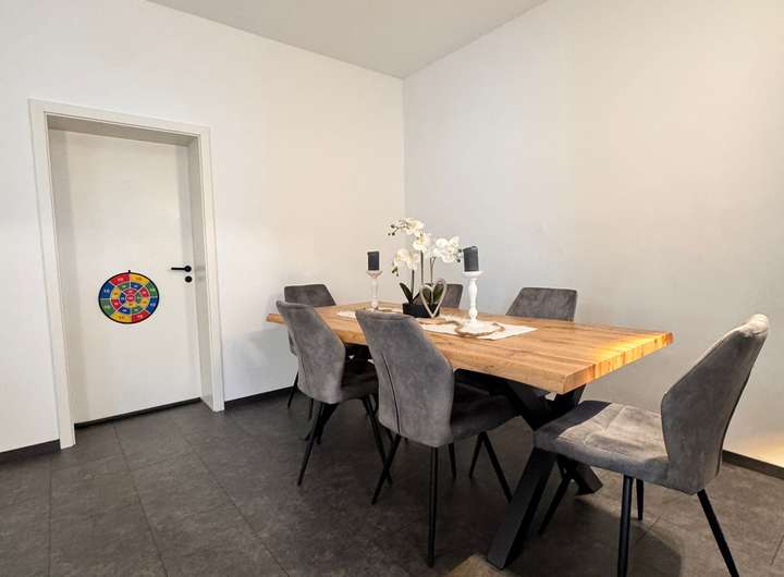 Der zentrale Wohn-/Essbereich bildet das Herz des Hauses und öffnet sich zur Küche mit angrenzendem Essbereich, perfekt für gemeinsames Kochen und gesellige Abende. Die Küche wurde mit neuen Elektrogeräten ausgestattet, sodass Sie ohne Zusatzinvestitionen direkt starten können.